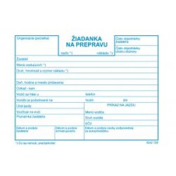 Dopravné tlačivo. Žiadanka na prepravu, A6, blok, 100 listov.| Vlastnosti produktu | |