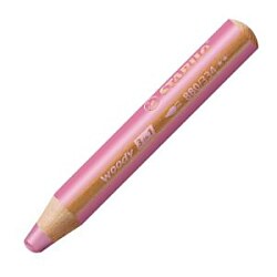 STABILO Woody 3 v 1 je multifunčkná farbička, vodovka a voskovka v jednom, ktorá vie kresliť na papier, na tmavý podklad, kartón, sklo, kov, drevo alebo trebárs aj na gumáky. Ozdobiť si drevený rámik, okno, chlebník alebo plechovku na ceruzky je hračka. Deti ju milujú a rodičia môžu zostať v pokoji, pretože farbu možno z ručičiek aj z hladkého povrchu dobre zmyť vodou s mydlom alebo saponátom. Tuha obsahuje osemkrát viac farby než bežná farbička, nemožno ju zlomiť a hodí sa na extra dllllllllhé kreslenie a na veľké umelecké diela: vďaka hrubej tuhe je možné všetko rýchlo vyfarbiť. Vďaka svojmu tvaru padne woody výborne do detskej ručičky. K dostaniu je 18 atraktívnych farieb, vrátane zlatej a striebornej. Zakúpiť sa dá v baleniach alebo jednotlivo. XXL tuha je uložená v tele, ktoré je vyrobené z dreva certifikovaného PEFC® (PEFC/04-31-1728) a je teda šetrná k životnému prostrediu.| Vlastnosti produktu | |