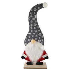 Vianočná dekorácia drevená 240X510 mm, trpaslík, sivá čiapka, červená, biela