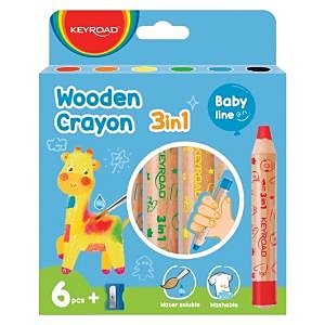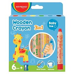 Voskové vodové pastelky v drevenom puzdre. Vysokokvalitné JUMBO pastelky na báze vosku a vodových farieb, ideálne pre malé deti. Funkcie: 3 v 1 voskové pastelky rozpustné vo vode, 6 kusov + strúhadlo.| Vlastnosti produktu | |