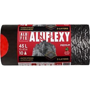 Vrecia na odpad Aluflexy zaťahovacie 45l, 10ks na rolke, hrúbka 30mikrónov, rozmer 52x69cm, sivo - čierne , 2 vrstvové odolné a pružné vrece, materiál LDPE| Vlastnosti produktu | |