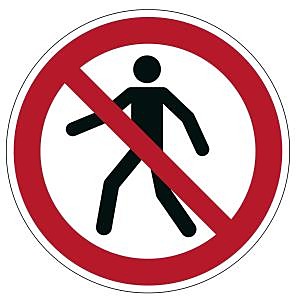Registrované bezpečnostné označovanie na identifi káciu nebezpečných oblastí, skladovacích priestorov, chodníkov a pod. Odolnosť proti skĺznutiu R9 podľa DIN 51130 v súlade s ISO 7010. Samolepiace značky na bezpečnostné označenie pre vnútorné použitie v skladoch, distribučných centrách, výrobných závodov a i. Odolné voči oderu a ťažkej záťaži. Zákazová značka priemer 430 mm, hrúbka 0,4 mm.| Vlastnosti produktu | |