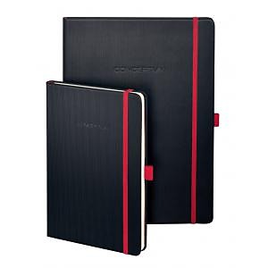 Zápisník s elastickou gumičkou, lacetkou a pútkom na pero v červenej farbe. Pevná čierna väzba s jemným ryhovaním. 194 číslovaných linajkových strán gramáže 80g/m2., adresár. Formát A5.| Vlastnosti produktu | |