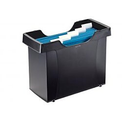 Zásobník na 20 štandardných závesných obalov formátu A4 s predným výrezom a postrannými skrytými držadlami na prenos. Dodávaný s 5 závesnými obalmi Leitz Alpha. Vnútorné rozmery 370 × 260 × 162 mm.| Vlastnosti produktu | |