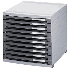 Box z modulárneho systému zásuvkových boxov s horizontálnym aj vertikálnym spájaním. Model s otvorenými zásuvkami (bez predného krytu) výšky 25 mm a zarážkou chrániacou zásuvky pred úplným vysunutím. Súčasťou sú identifikačné menovky na označenie zásuviek.Telo boxov vo svetlosivej farbe, zásuvky tmavosivé. Rozmery (š × v × h) 30 × 30,7 × 38,2 cm.| Vlastnosti produktu | |