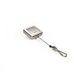Štýlový hranatý vysokokvalitný pochrómovaný kotúč so svorkou s možnosťou vysunutia do 80 cm. Vhodný na uchytenie všetkých visačiek značky DURABLE s perforáciou.