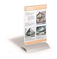 Univerzálny stojan odolný voči UV žiareniu v naklonenej verzii. Vhodný na výstavy, veľtrhy, ponukové listy, jedálne lístky a propagačné materiály. Vyrobený z kvalitného číreho akrylu, stabilný a pevný. Formát A4.