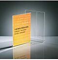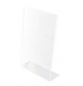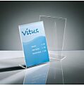 Univerzálny stojan odolný voči UV žiareniu v kolmej verzii. Vhodný na výstavy, veľtrhy, ponukové listy, jedálne lístky a propagačné materiály. Vyrobený z kvalitného číreho akrylu, stabilný a pevný. Formát A4.