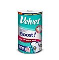 Tri vrstvy mimoriadne pevné a skvele savé buničiny, to sú papierové utierky Velvet Boost! . Vďaka nim sa dokonale osvedčí pri prácach vykonávaných nasucho aj namokro. Maxi veľkosť jednotlivých útržkov zaručí, že utierka je mimoriadne savá, zvládne aj ten najväčší neporiadok a dlhšie vydrží. Vďaka príhodnej veľkosti rolky sa výrobok zmestí do každej, aj tej najmen