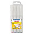 Jednorazový liner s jemným plastovým hrotom na najširšie využitie. Šírka stopy 0,3 mm, dĺžka stopy 1500 m. Dodávaný v sade 4 ks.Farba: sada 4 ksŠírka stopy: 0,3 mm