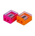 Dvojité plastové strúhadlo so zásobníkom na štandardné a farebné ceruzky. Dodávané v mixe farieb bez možnosti výberu konkrétnej farby. Väčšie balenie 40 ks.