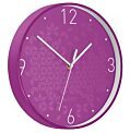 Quartz hodiny z produktového radu Leitz WOW. Tichý chod, dvojfarebný rám z pevného plastu v kombinácii so sklenenou prednou stranou. Jasný ciferník vo WOW farbách s veľkými číslicami, tri kontrastné ručičky viditeľné aj z diaľky. Priemer 29 cm, hrúbka 4,3 cm. Batéria AA nie je súčasťou balenia. Farba purpurová.