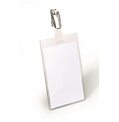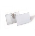 Visačky z pevného priehľadného PVC. Uchytenie na odev pomocou štipca alebo zatváracieho špendlíka. Náhradné papiere do visačiek obj. kód DU145502. Rozmery: 90x54 mm. Balenie 50 ks.Rozmery: 90 x 54 mm