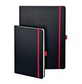 Zápisník s elastickou gumičkou, lacetkou a pútkom na pero v červenej farbe. Pevná čierna väzba s jemným ryhovaním. 194 číslovaných linajkových strán gramáže 80g/m2., adresár. Formát A4.